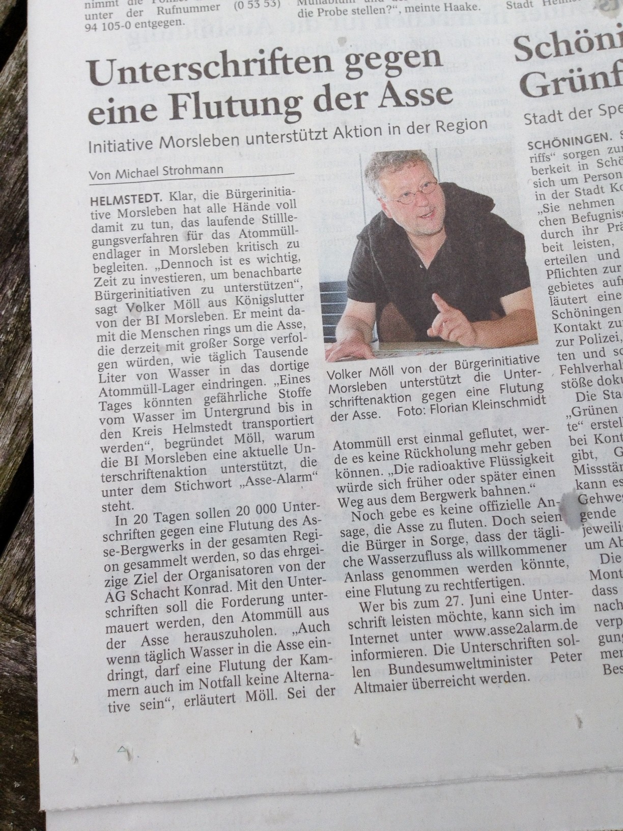 19.6.2012, Helmstedter Nachrichten - Unterschriften gegen eine Flutung der Asse